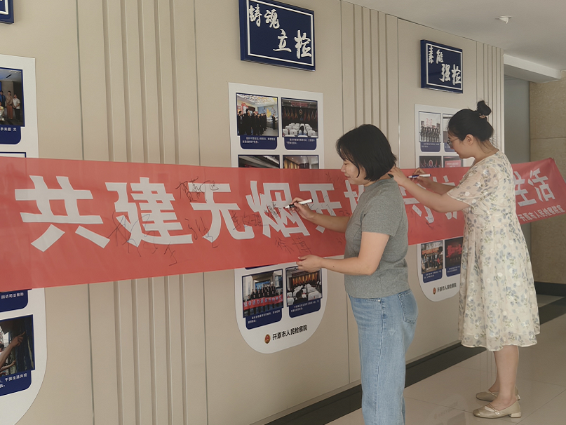 此次活动在办公区域、楼道、公共活动室、食堂等人员密集场所的显著位置,统一张贴了醒目的“禁止吸烟”标识和“无烟单位”宣传海报,不仅清晰划定了禁烟范围,更提醒干警要时刻维护清新健康的环境。随后,干警们在“共建无烟开检 守护美好生活”的大型主题承诺条幅上踊跃签名,纷纷表达了对共建无烟文明环境的承诺。