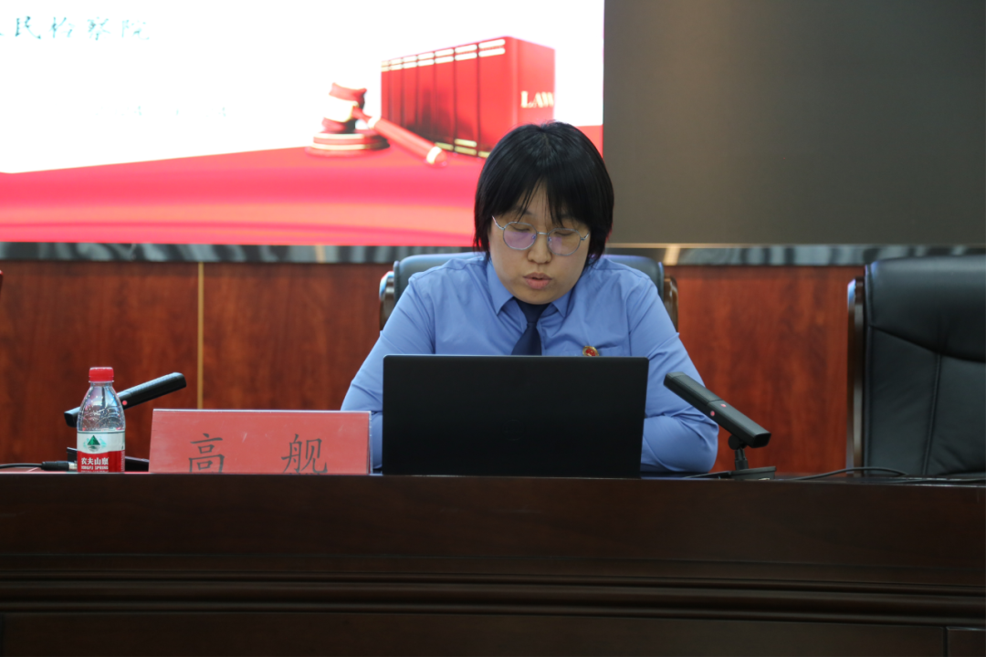 第二检察部主任高舰结合部门相关案例为干警讲述如何撰写公诉意见。