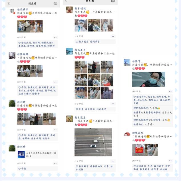 此时,图片中的检察干警们已经忙碌了一整天,他们一张张疲惫却自信的脸庞赢得点赞无数。“你们是最棒的!”“这小伙真帅!”“奔跑的样子多帅!”一条条评论在赞美这一群“疫情逆行者”的同时,也为静态管理下的开原防疫工作营造了良好的线上氛围。